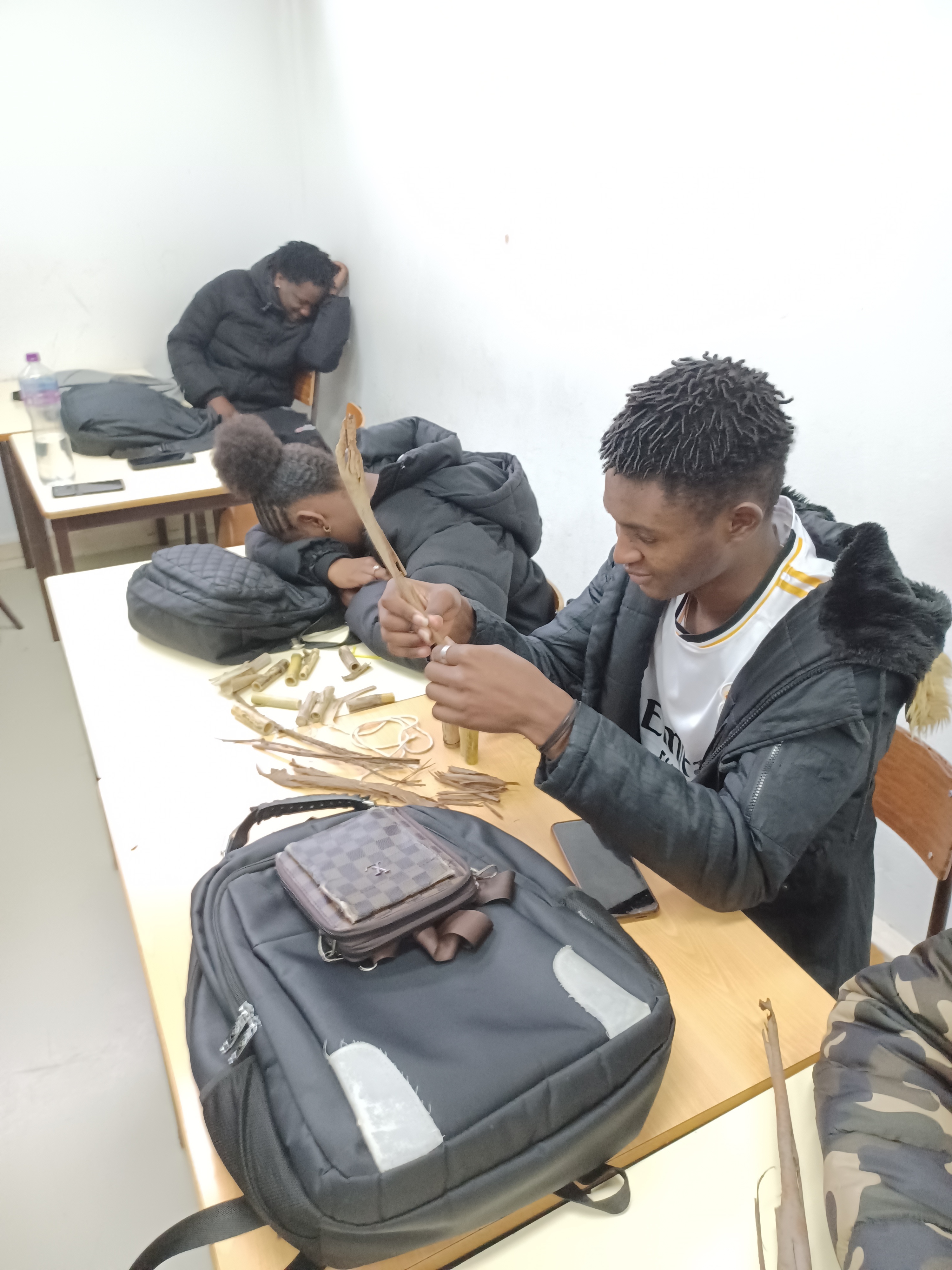 A exposição foi realizada no auditório da escola devido ao estado do tempo (chuva e vento fortes).