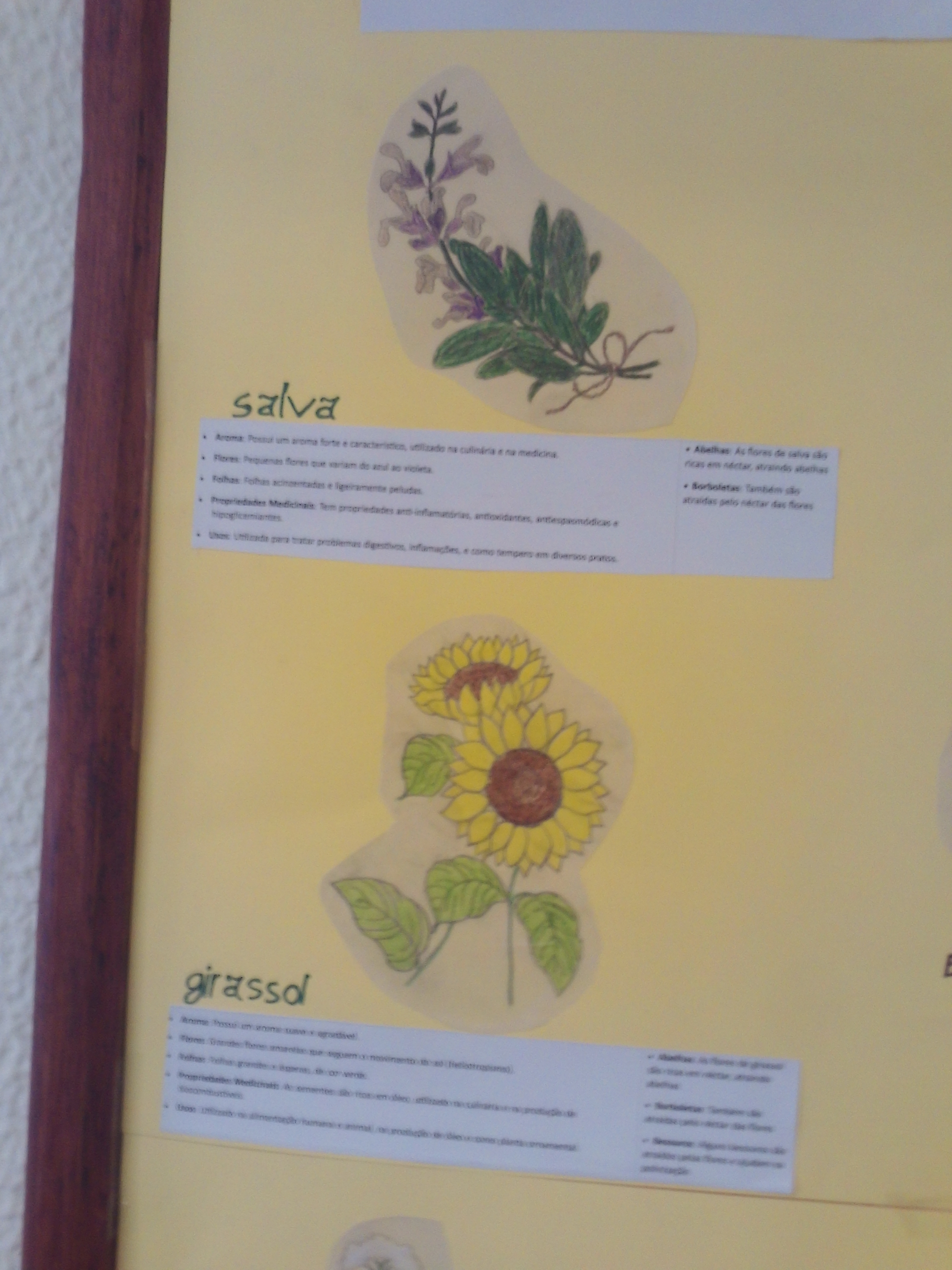 As informações recolhidas foram transpostas para cartolinas. Estas foram ilustradas com as flores das respetivas plantas, pintadas pelos formandos.