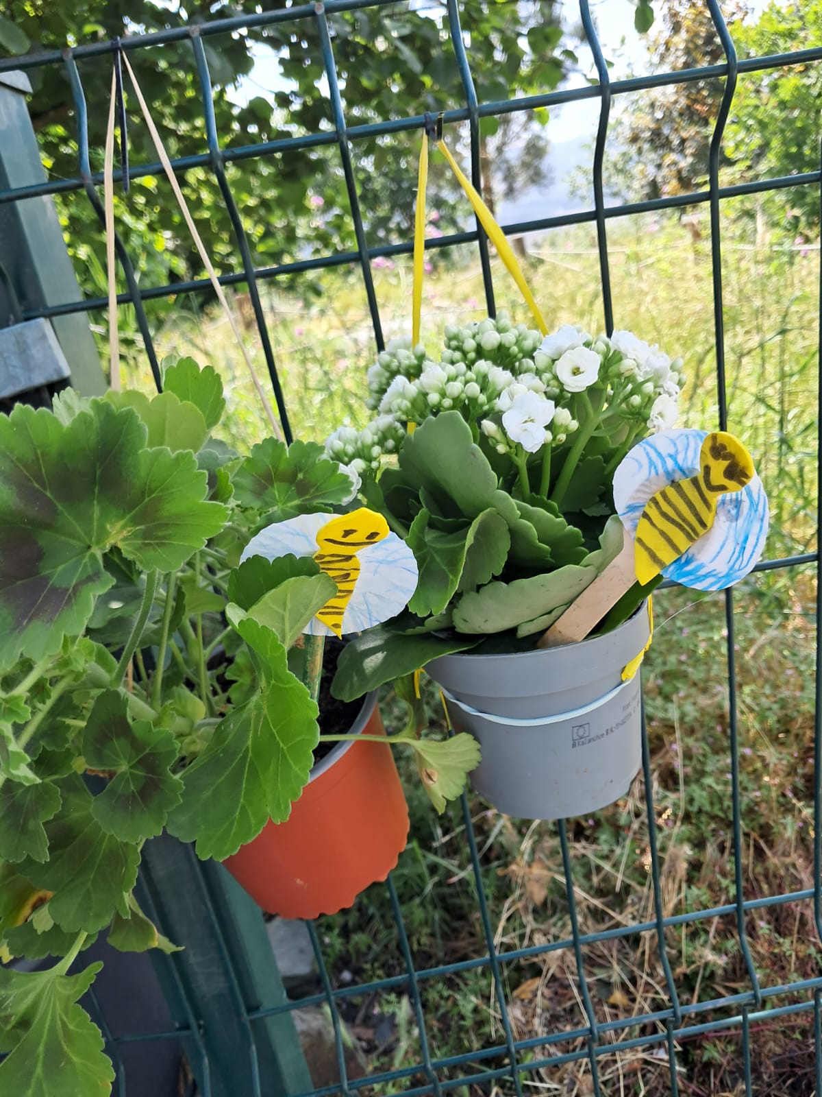 No Dia da Biodiversidade lançamos às famílias o desafio de oferecerem à escola vasos com flores. Estes foram colocados na rede do charco, junto aos postos de bebedouros para insetos.
