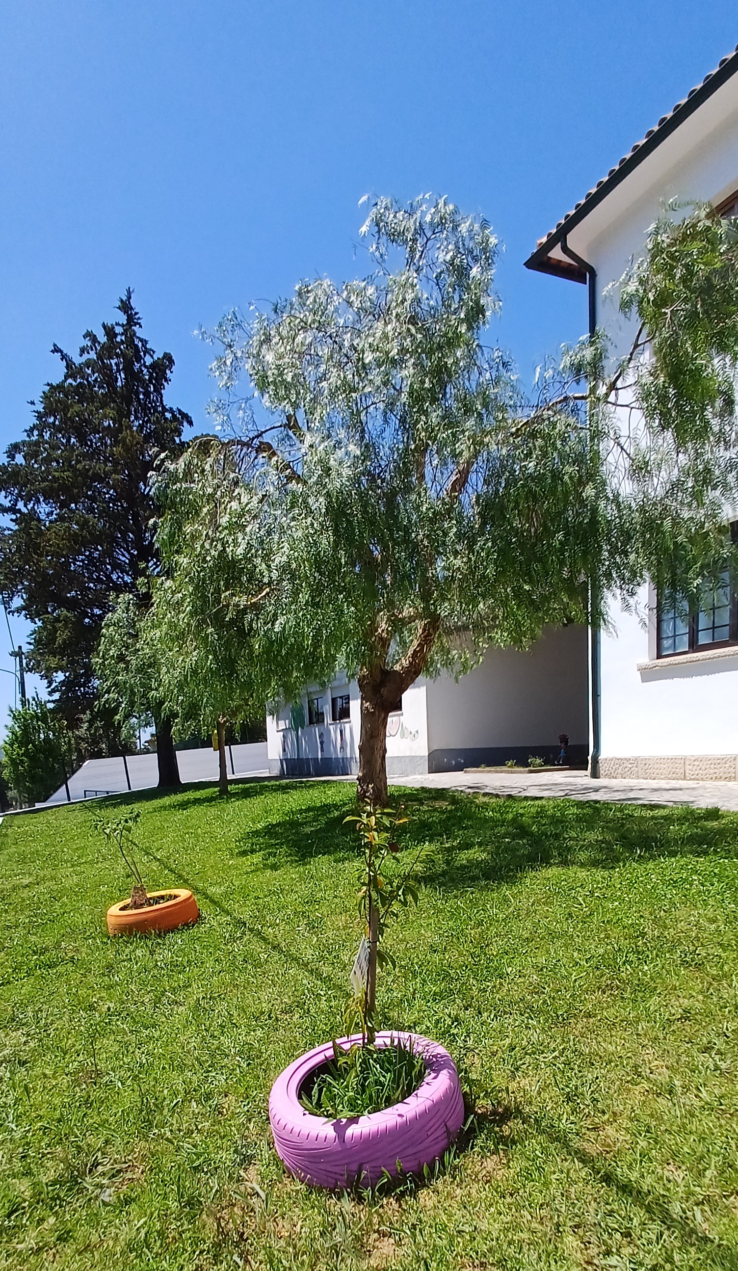 A docente e assistentes operacionais também ofereceram algumas plantas e casinhas de madeira para as aves, que os alunos também pintaram e colocaram no espaço exterior. O projeto foi iniciado no Dia Mundial da Árvore. Os alunos plantaram um pessegueiro e um arbusto physális no espaço exterior ajardinado.