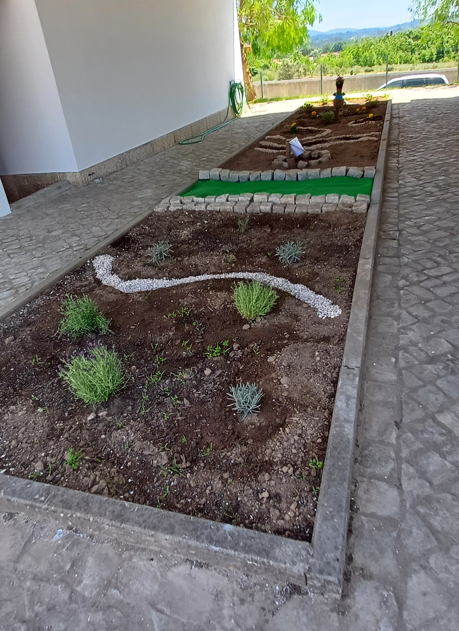 Com os materiais adequados, terra fértil e plantas oferecidas por vários elementos da comunidade educativa, transformou-se um espaço vazio e sem vida, num jardim, com variadas espécies da flora local.