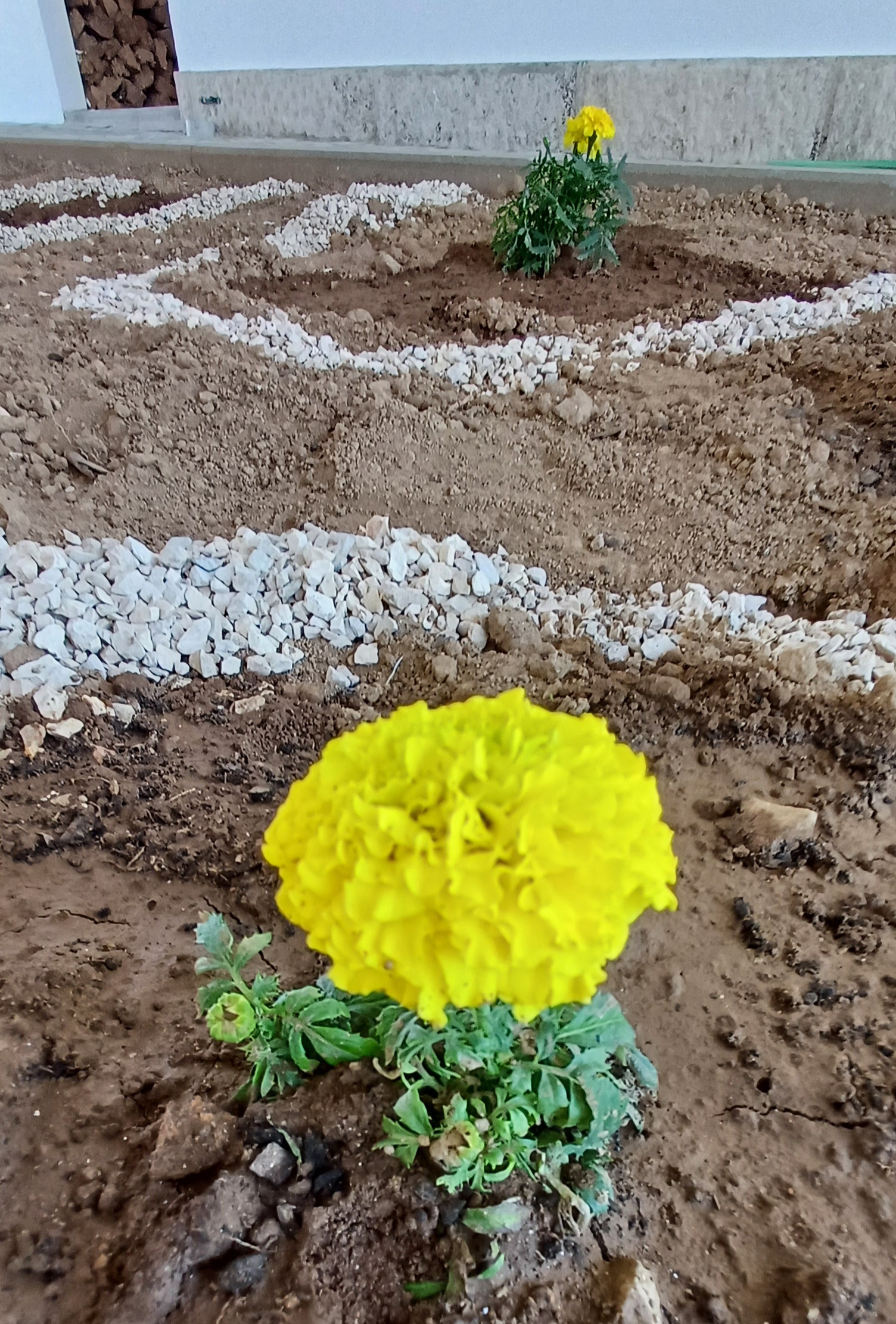 Posteriormente foi a vez das plantas aromáticas: alfazema, alecrim e rosmaninho, e ainda, as plantas com flor, como os malmequeres. Também criámos canteiros de sementeiras onde, em breve, nascerão girassóis, lírios e dálias.