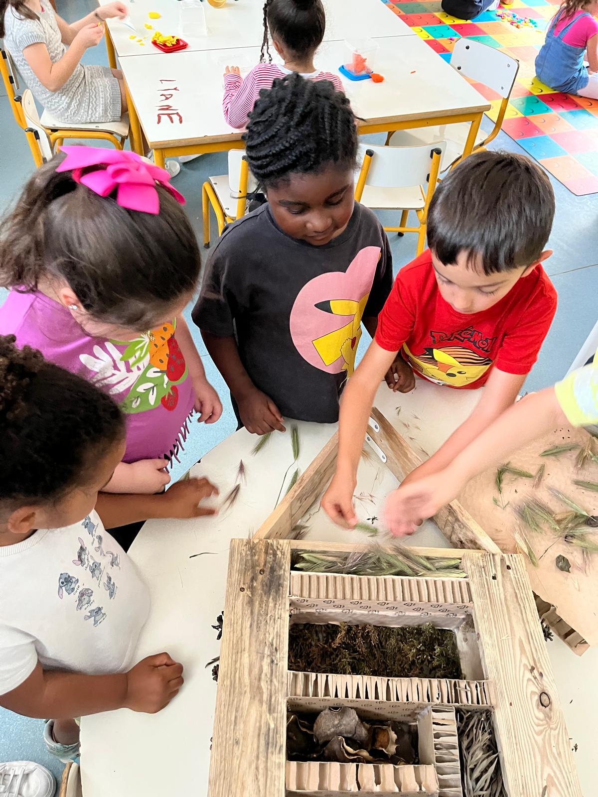 Madeiras de paletes, caixas de garrafas de vinho em madeiras, paus, canas, pinhas, etc... trazidos pelos alunos e suas famílias.