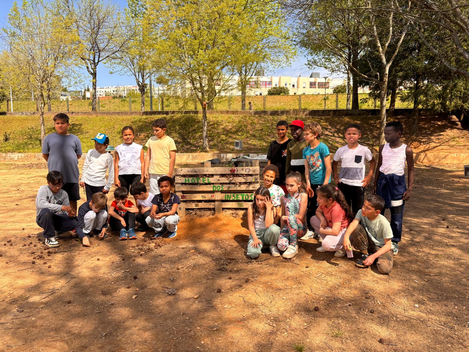 Construção de um hotel de insetos, recorrendo a paletes e materiais recolhidos das árvores, como ramos, pinhas e casca;