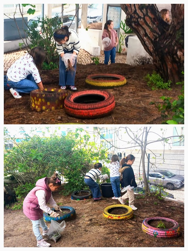 As professoras das turmas do 2º ano abraçaram este projeto dos espaços exteriores - jardins polinizadores.