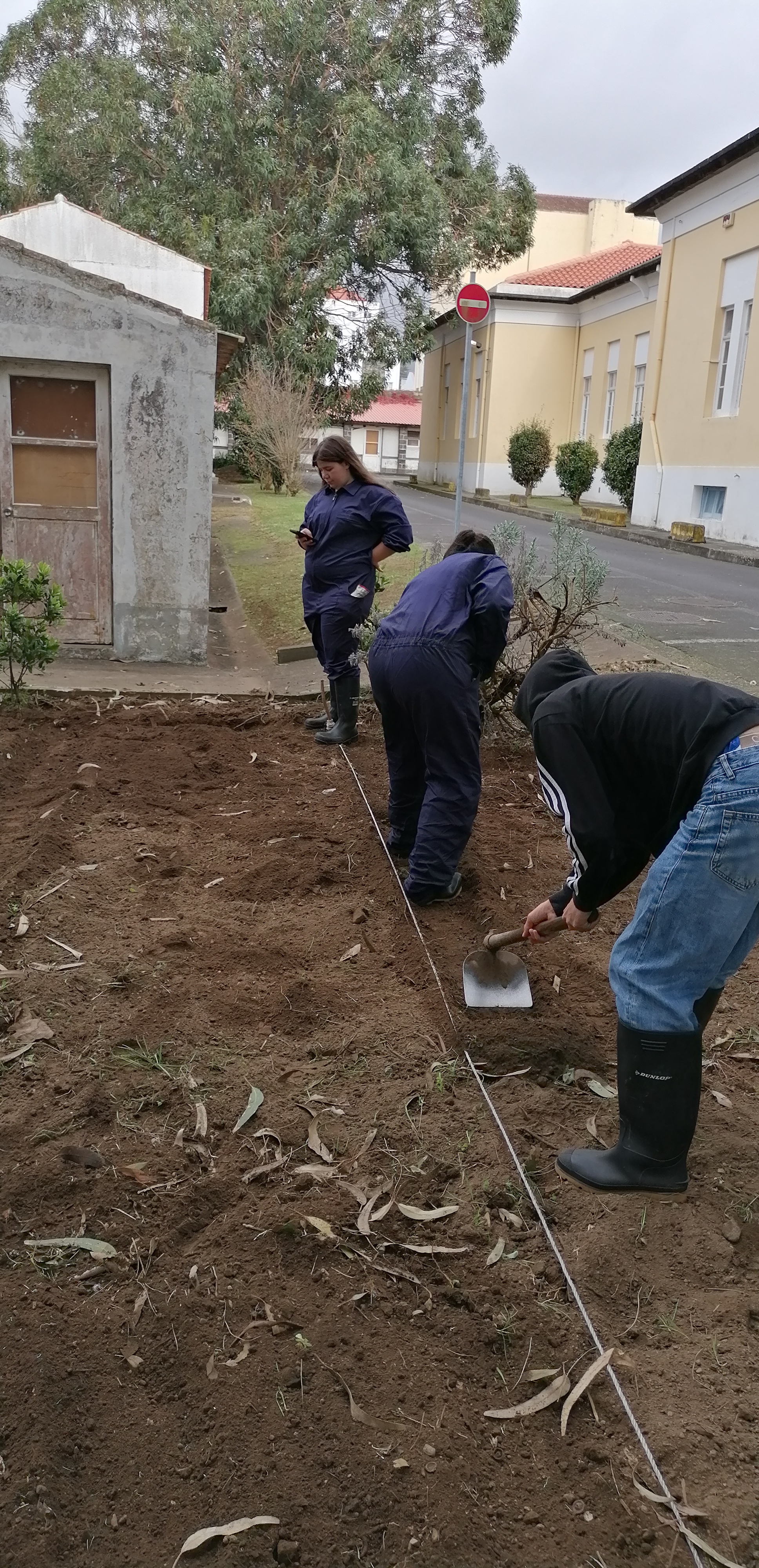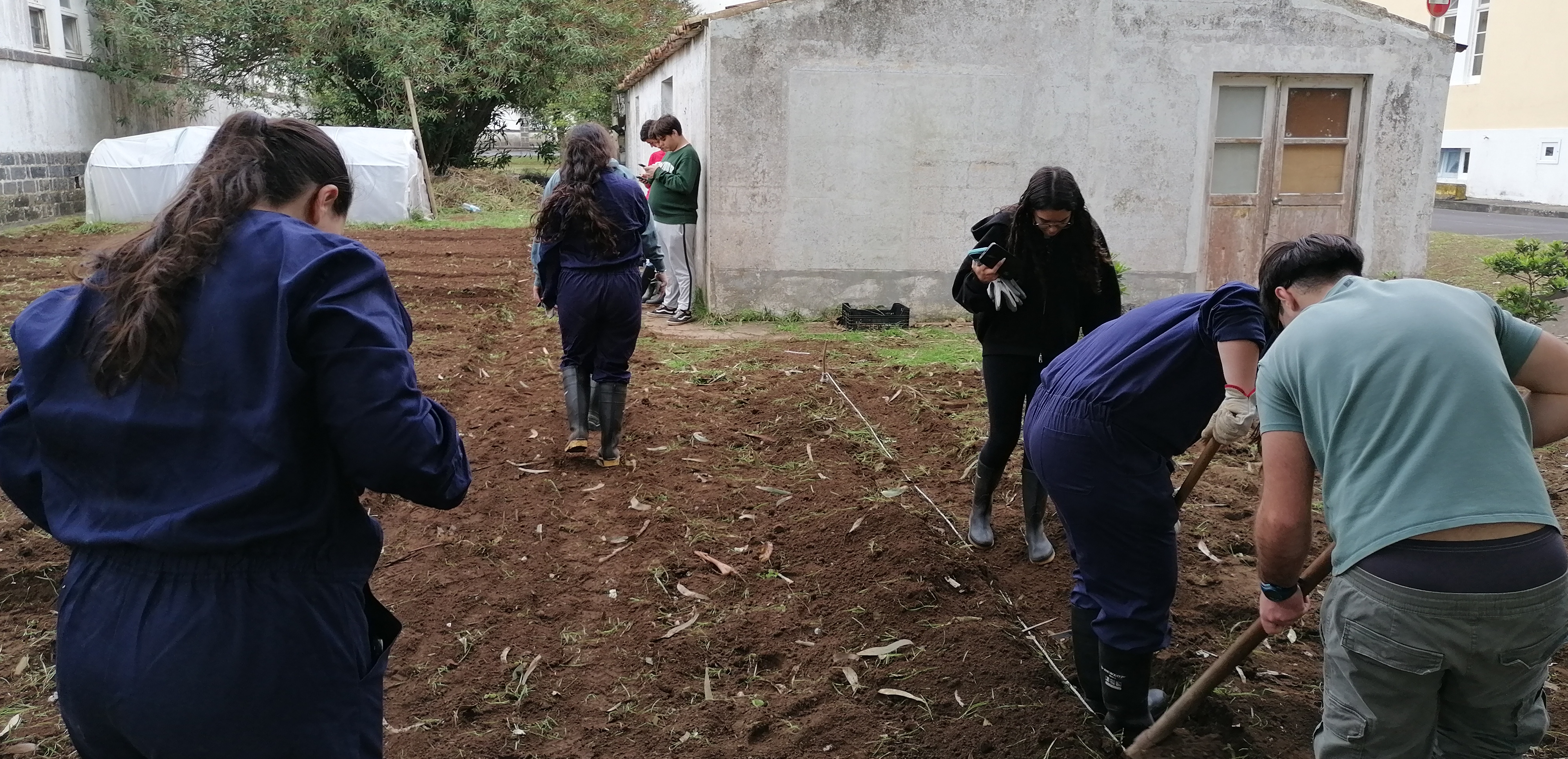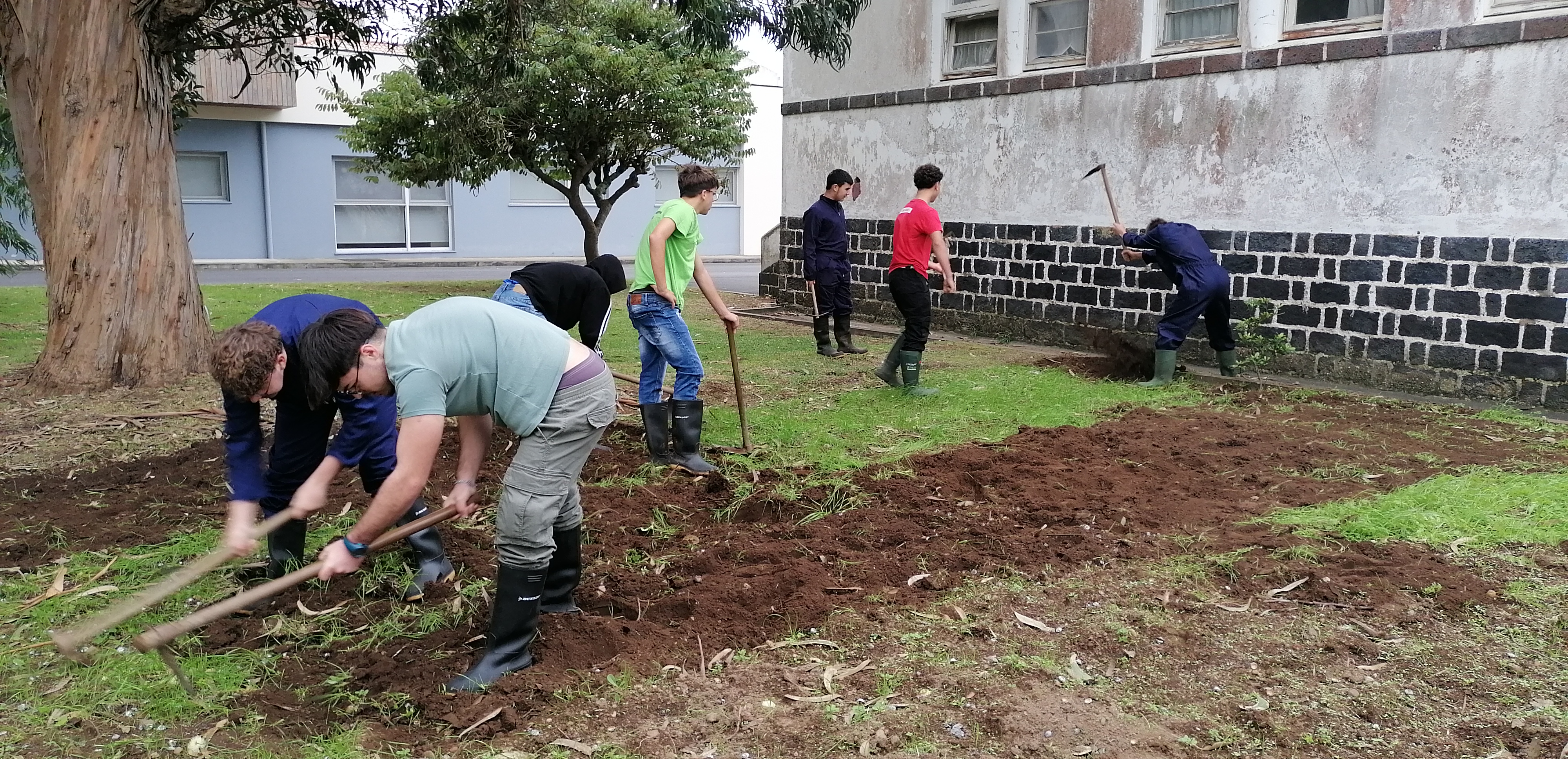 No inicio do ano letivo os alunos realizam a limpeza de infestantes, mobilização manual com sachos e enxadas e a fertilização é feita com os composto do ano anteior.
