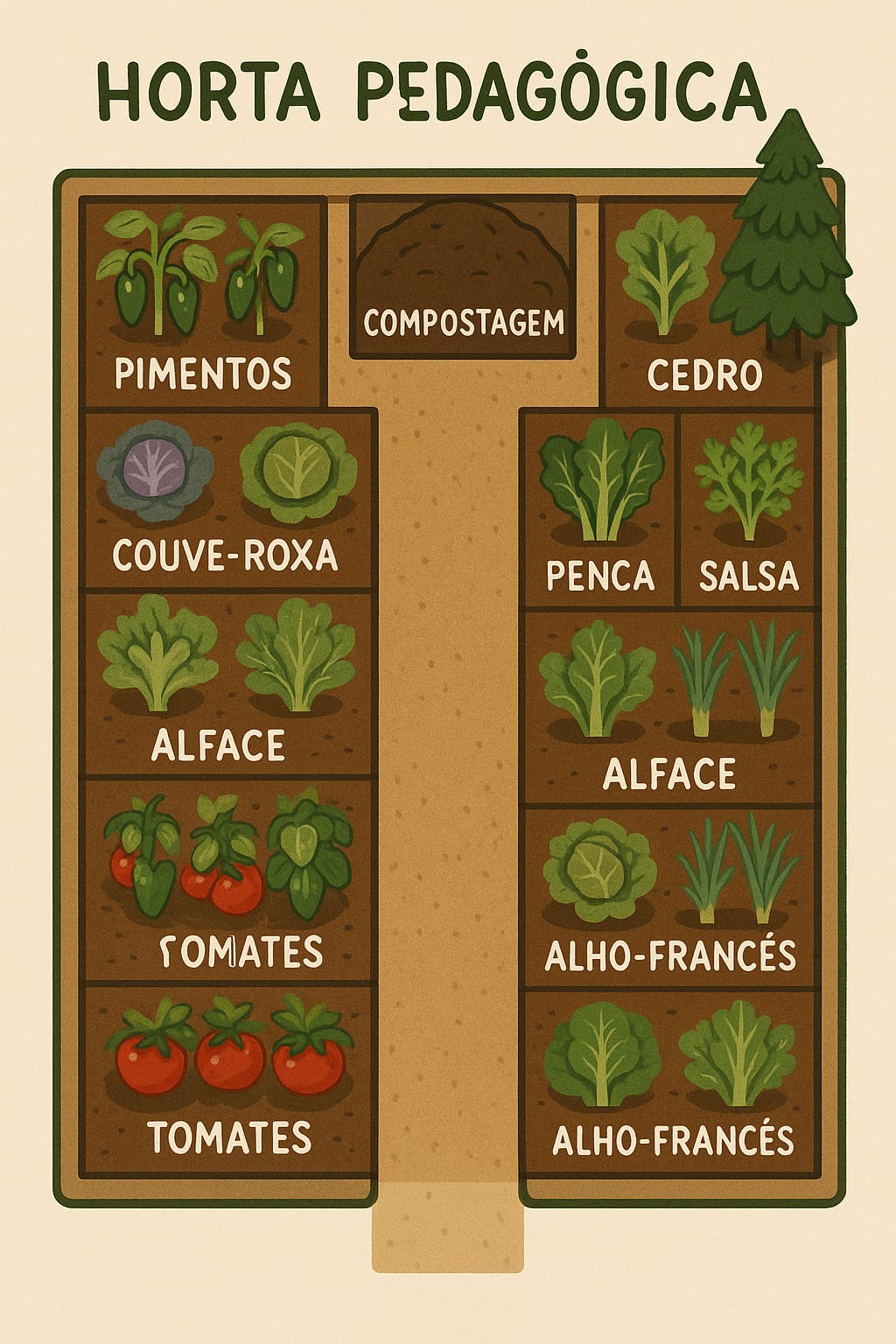 Habitualmente, 1 dia por semana, um grupo de alunos (rotativo, de forma a todos poderem participar) pode cuidar horta, arrancando erva, cavando a terra, colocando composto, semeando/plantando e colhendo legumes.