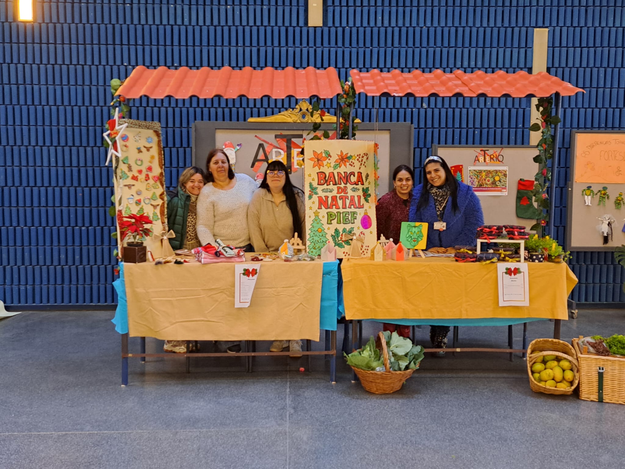 2. à porta da sala dos professores está uma banca dinamizada pelos alunos aquando das colheitas sazonais